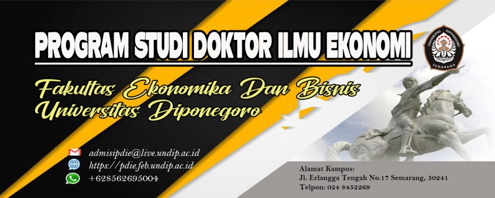 Doctoral Program in Economics, Universitas Diponegoro (well known as PDIE UNDIP) was officially established on March 11, 2002. The establishment of the PDIE is based on the Letter of the Directorate General of Higher Education, Ministry of Education and Culture No. 497 / D / T / 2002 dated March 11, 2002 concerning the Permission to deliver doctoral program in economics at Universitas Diponegoro.