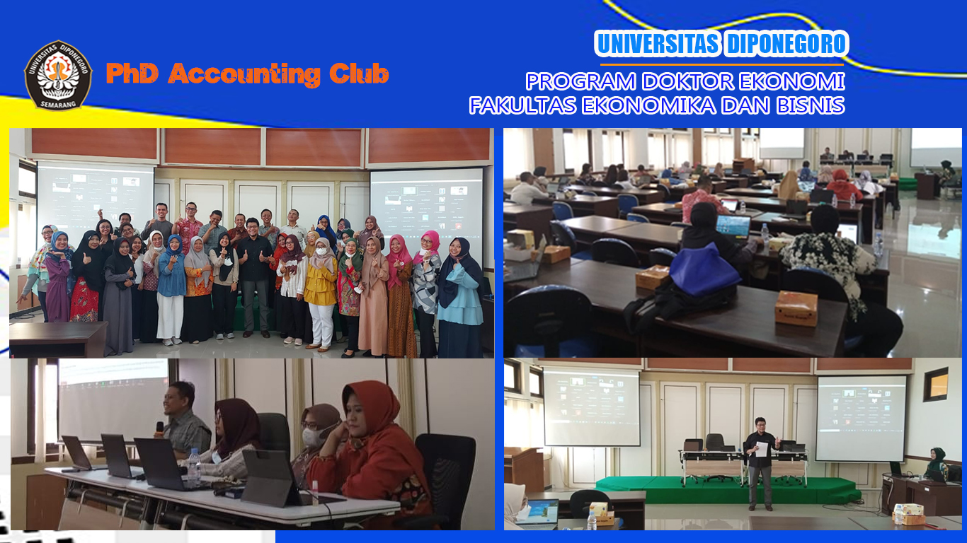 PhD Accounting Club held a workshop on 30 September 2022. This workshop discussed Simulation Tools for Research Novelty and Tips for publication. Four PhD students shared their experience in doing research. Maya Indriastuti (2020) talked about her experience in national and international publication, Toton Hartanto (2021) shared ideas about simulation tools (PoP, VoS Viewer, Biblioshiny, and Lib Gen). Meanwhile Dwi Sudaryati (2019) and Maylia Pramono Sari (2021) shared their experience in writing qualitative and quantitative research proposal including their experience in qualification exam. This workshop was attended by 31 students (offline) and 42 students (online).