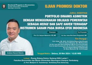 Program Doktor Ekonomi Fakultas Ekonomika dan bisnis UNDIP, Mengundang Bapak/Ibu/Saudara untuk mengikuti Ujian Promosi Doktor yang akan diselenggarakan pada:Hari, Tanggal : Selasa, 28 Mei 2024